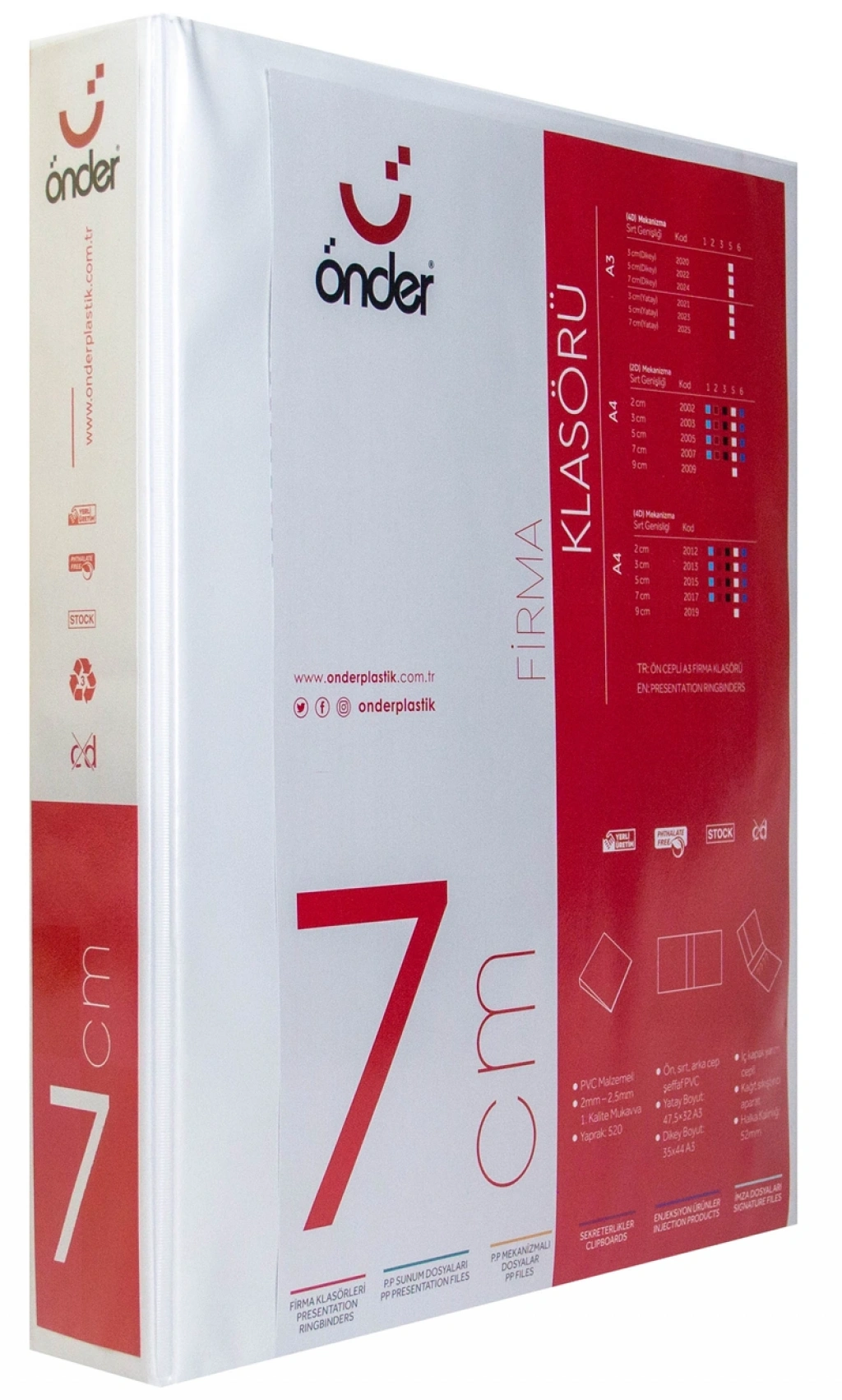 ÖNDER A3 DİKEY FİRMA KLASÖRÜ 7CM 4D MEK BEYAZ
